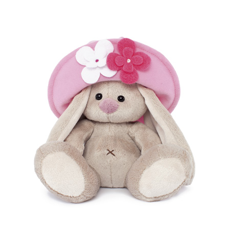 Милая шляпка с широкими полями из розового флиса, украшенная большими, яркими цветами из плотного флиса.