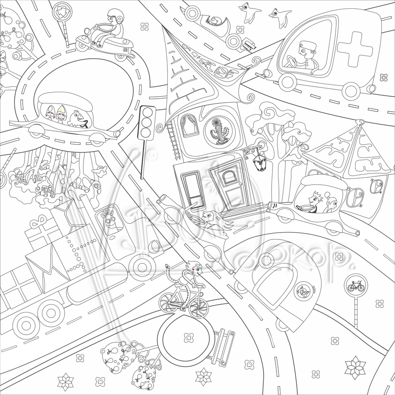 Раскраски напечатаны безвредными латексными чернилами на самоклеющемся полиэстере (материал похож на лейкопластырь). Приклеиваются на любую чистую гладкую поверхность, включая мебель, стекло, плитку. Отлично переклеиваются, не оставляют следов и не пахнут. Хорошо раскрашиваются яркими фломастерами, мелками, карандашами и даже пластилином. Упаковка - картонный тубус с жестяными крышками.