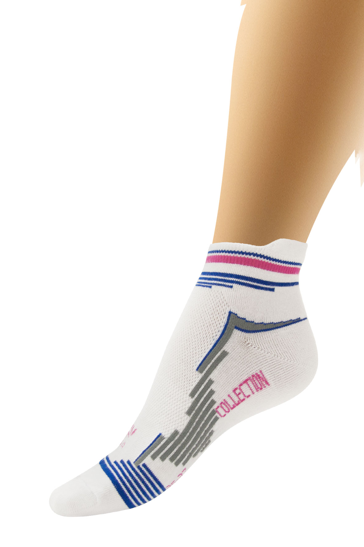 Описание: Спортивный носок с укороченным паголенком, по следу вывязан рельефный цветной рисунок