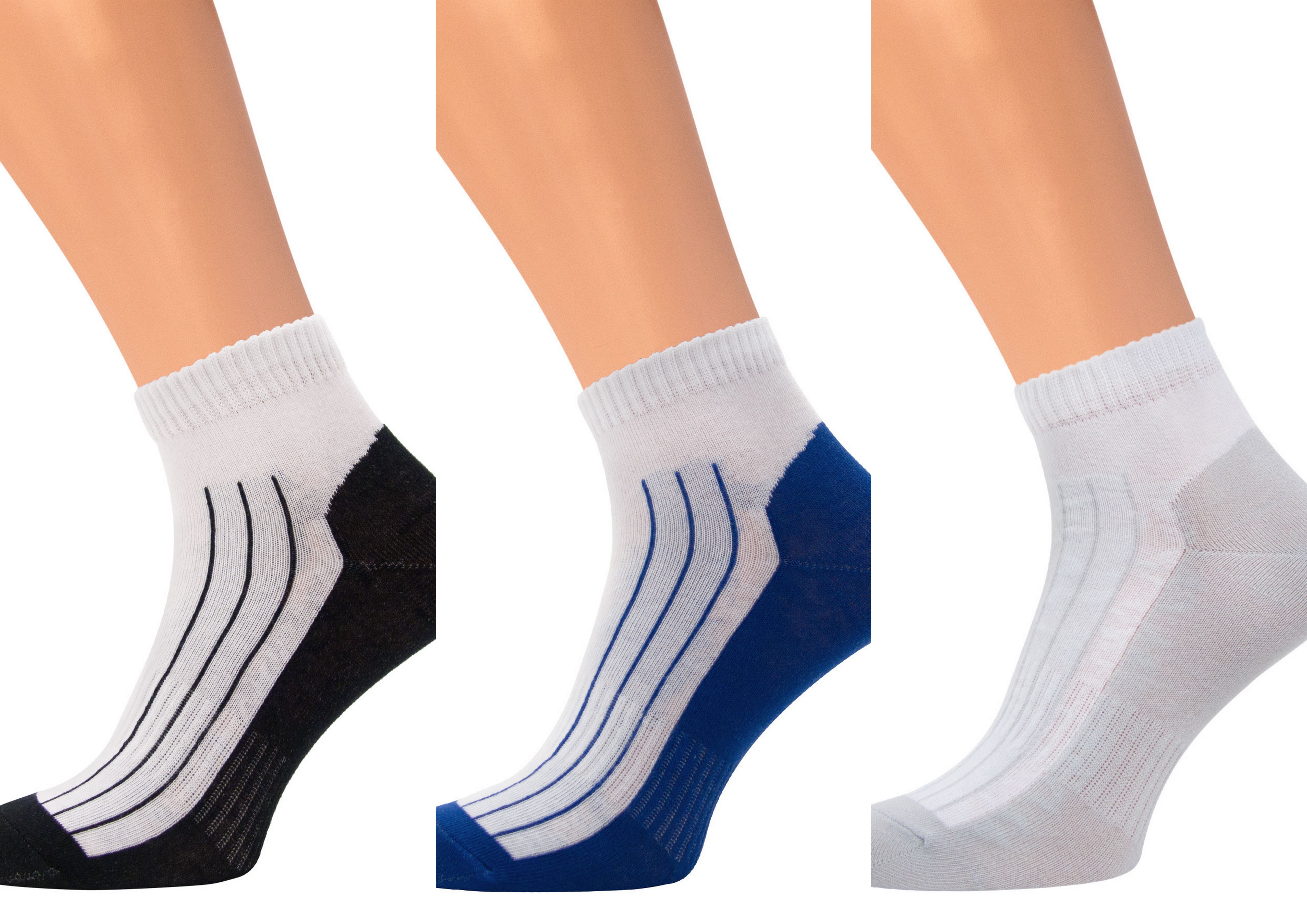 Описание: Спортивный носок с укороченным паголенком, по голеностопу вывязаны узкие цветные полосы, двухцветный след
