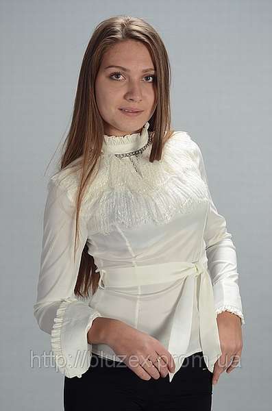 Блузка с воротником стоечка. По горловине пришито колье со стразами.Пояс отлично подчеркивает линию талии. застежка : потайная молния по линии спины и на горловине сзади пуговичка.