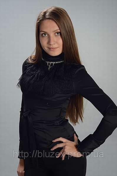 Блузка с воротником стоечка. По горловине пришито колье со стразами.Пояс отлично подчеркивает линию талии. застежка : потайная молния по линии спины и на горловине сзади пуговичка.