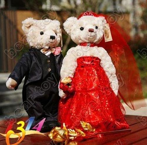 Парочка плюшевых мишек - молодоженов. Высота игрушки 35 см.