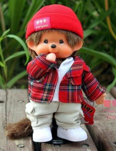 Обезьянка-мальчик в клетчатой рубашке. Высота игрушки 20см.