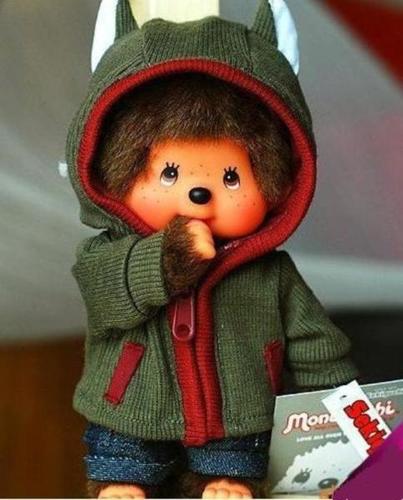Обезьянка-мальчик в костюме волка. Высота игрушки 20см.