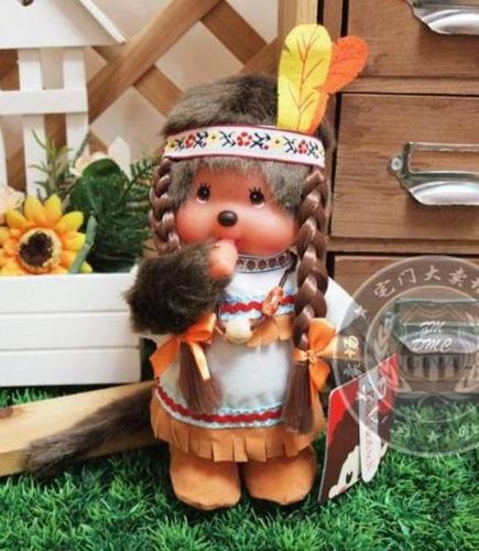 Обезьянка-девочка в костюме индейца. Высота игрушки 20см.