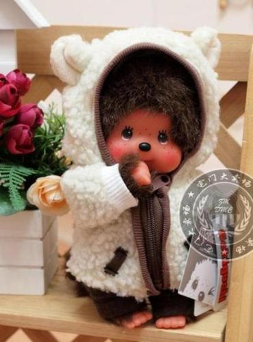 Обезьянка-девочка в костюме овечки. Высота игрушки 20см.