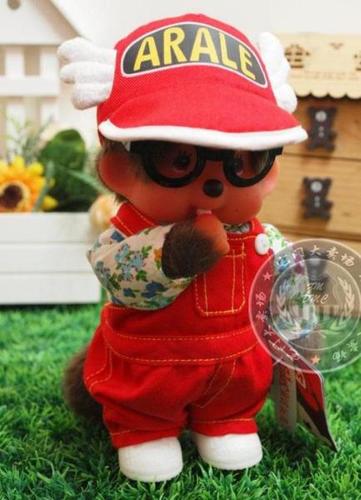 Обезьянка-мальчик в красном комбинезоне и очках. Высота игрушки 20см.