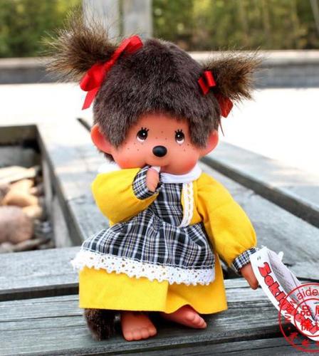 Обезьянка-девочка в желтом платье с передником. Высота игрушки 20см.