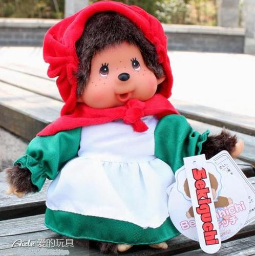 Обезьянка-девочка в костюме Красной Шапочки. Высота игрушки 20см.