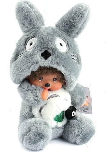 Обезьянка Monchhichi в маскарадном костюме Тоторо, духа-хранителя леса из полнометражного аниме-фильма "Мой сосед Тоторо". Высота игрушки - 20см.