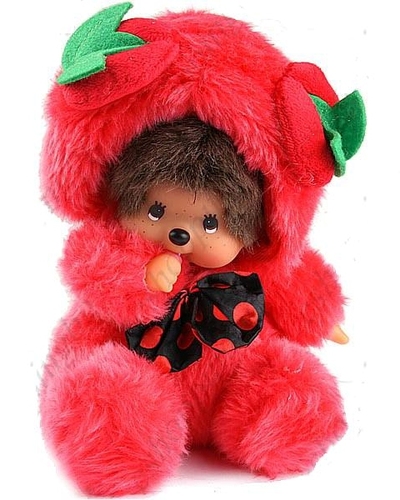 Обезьянка Monchhichi в маскарадном костюме сладкой клубнички. Высота игрушки - 20см.