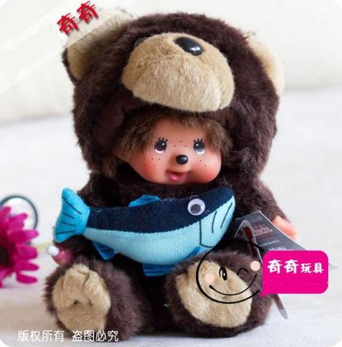 Обезьянка Monchhichi в маскарадном костюме мишки-рыбака с удачным уловом. Высота игрушки - 20см.