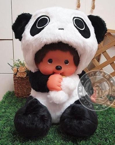 Обезьянка Monchhichi в маскарадном костюме веселой панды. Высота игрушки - 50см.