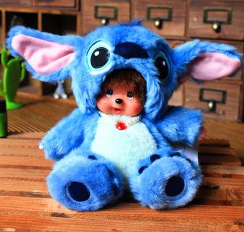 Обезьянка Monchhichi в маскарадном костюме голубового Стича. Высота игрушки - 20см.