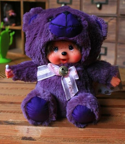 Обезьянка Monchhichi в маскарадном костюме фиолетового мишки. Высота игрушки - 20см.