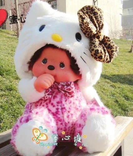 Обезьянка Monchhichi в маскарадном костюме "Hello Kitty". Высота игрушки - 40см.
