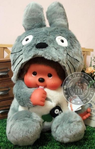 Обезьянка Monchhichi в маскарадном костюме Тоторо, духа-хранителя леса из полнометражного аниме-фильма "Мой сосед Тоторо". Высота игрушки - 40см.