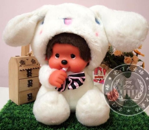Обезьянка Monchhichi в маскарадном костюме белого зайчика. Высота игрушки - 40см.