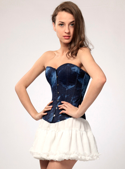 Корсет выполнен из мягкого денима, плотно облегает и и выгодно повторяет все изгибы Вашего тела. При помощи шнуровки и тканевой подложки, расположенной сзади, корсет идеально скорректирует фигуру.