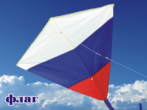 Простой воздушный змей. Размер 75х70см., длина леера 30м. Материал - армированный нейлон таффетаR/S Каркас из стеклопластикового стержня. Рассчитан на ветер от 3 до 14 м/сек.