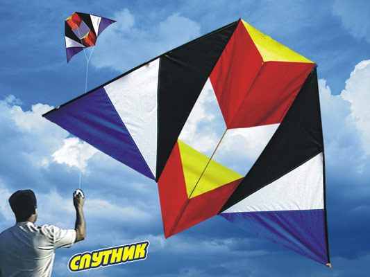 Коробчатый воздушный змей. Размер 140х70см., длина леера 50м. Материал - армированный нейлон таффетаR/S. Каркас из стеклопластикового стержня. Рассчитан на ветер от 3 до 14 м/сек.