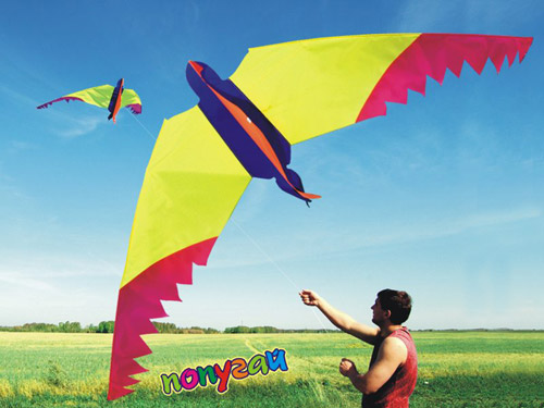 Змей имеет форму птицы и в полёте при рывках за леер машет крыльями. Вызывает живой интерес настоящих пернатых.