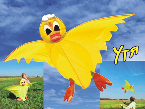 Это самый интересный воздушный змей для маленьких детей. Объёмные лапки, голова и клюв придают очень оригинальный вид, а махание крыльями в полёте вызывает улыбки у детей и взрослых.