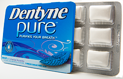 Линия Pure от Dentyne - это сочетание мяты и лесных трав в каждой подушечке жевательной резинки, а так же мягкой начинки!