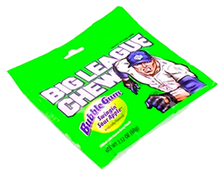 Эта необычная пакетированная резинка родилась в 1977 году, когда бейсболисту питчеру Робу Нельсону и формеру команды NY Yankees Джиму Бутону пришла замечательная идея — измельчить жевательную резинку и положить ее в пакет. Так появилась жвачка: Big League Chew. Сейчас это любимая жевательная резинка бейсболистов и фанатов бейсбола. Смотря в телевизионных трансляциях на игроков, жующих большие комки жвачки, Вы можете быть уверены - это Big League Chew!