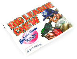Эта необычная пакетированная резинка родилась в 1977 году, когда бейсболисту питчеру Робу Нельсону и формеру команды NY Yankees Джиму Бутону пришла замечательная идея — измельчить жевательную резинку и положить ее в пакет. Так появилась жвачка: Big League Chew. Сейчас это любимая жевательная резинка бейсболистов и фанатов бейсбола. Смотря в телевизионных трансляциях на игроков, жующих большие комки жвачки, Вы можете быть уверены - это Big League Chew!