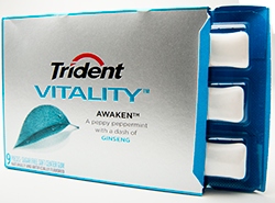 Линия Vitality жевательной резинки Trident содержит особый вид кальция "Recaldent", который помогает восстанавливать минеральный баланс среды полости рта. Когда Recaldent попадает в полость рта, он связывается с эмалью, зубным налётом и мягкими тканями, доставляя кальций и фосфор именно туда, где они больше всего необходимы. Поэтому Recaldent ещё называют "жидкой эмалью". Кроме того, его слияние с эмалью помогает значительно снизить риск образования зубного налета.