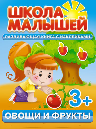 "Овощи и фрукты" для 3-х лет. Развивающая книга с наклейками для детей. с 3-х лет. (серия изданий «Школа малышей») Для чтения взрослыми детям.